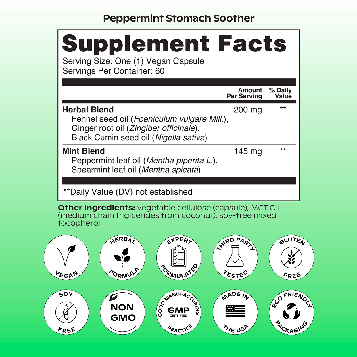 For best results, taking it before meals allows the enteric-coated inner capsule—containing peppermint and spearmint oils—to pass through the stomach intact, ensuring peppermint oil is released in the intestines where it works best.
