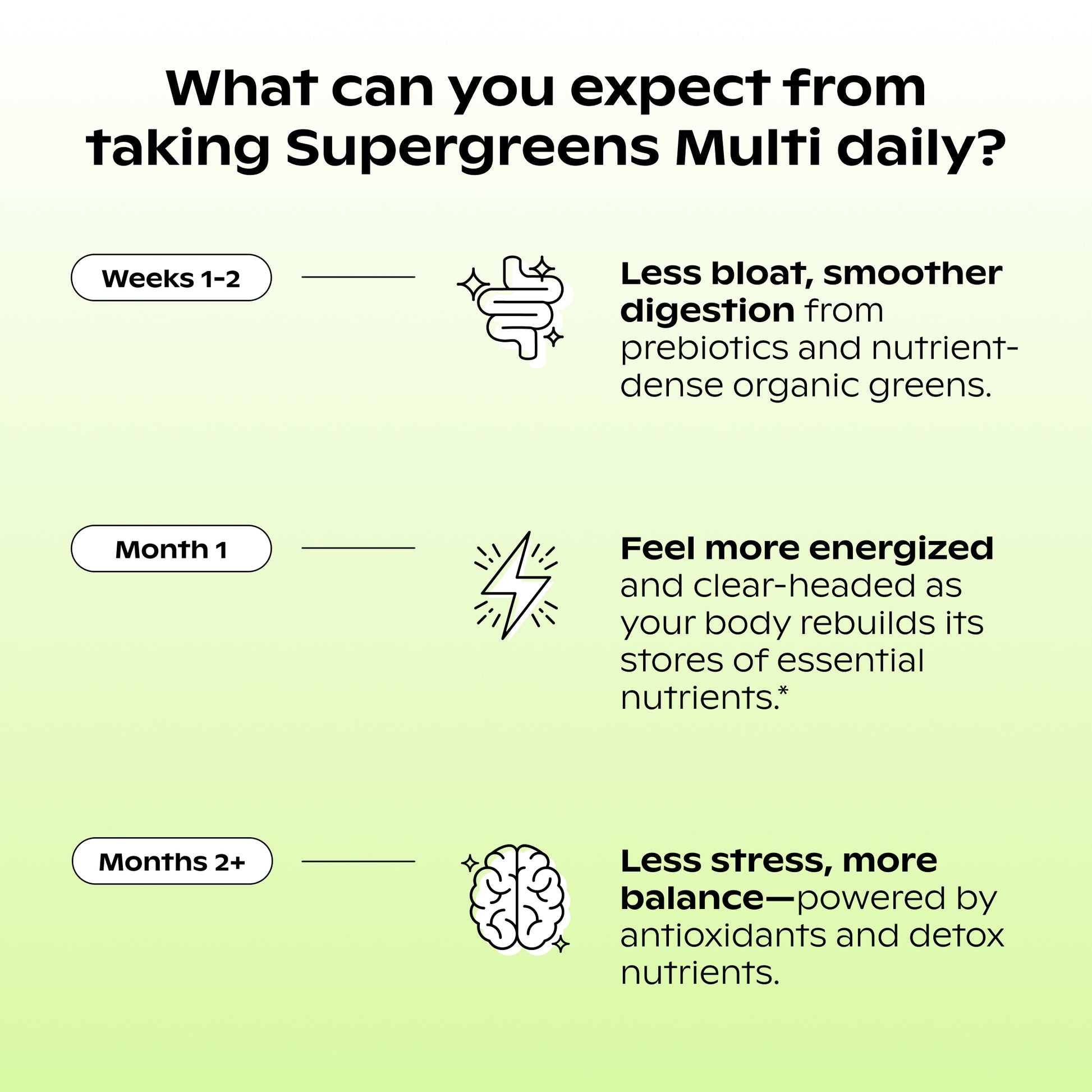 Over 90% of people miss key nutrients that affect energy, digestion, and detox. The Supergreens Multi makes it easy to get what your body needs, daily.
