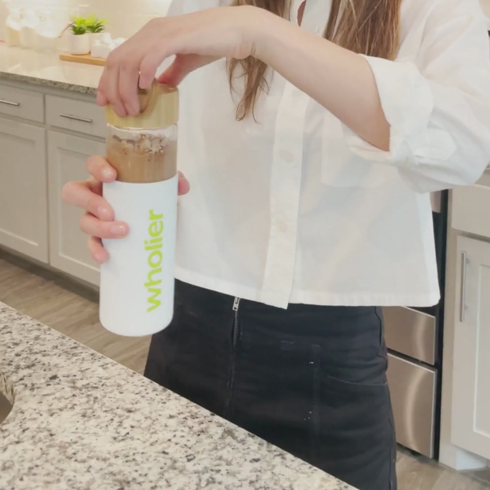 Take your protein on-the-go with this sustainable glass and bamboo shaker bottle. The bottle comes with a wire ball to help blend your protein.